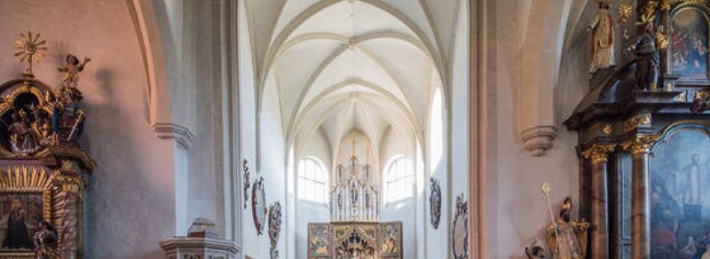 With its Baroque interior, the church is home to many art treasures, such as the Gothic double-winged altar from 1480.